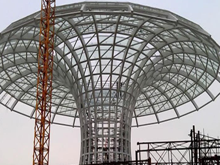 二、球形网架结构因其结构新颖,受力合理,自重轻、用钢量低等优点。如大型体育场馆球形乌海螺栓球网架、公共场馆球形网架、电厂乌海螺栓球网架、水泥工业球形网架、仓储物流球形网架、乌海干煤棚工业球形网架、乌海收费站乌海加油站球形网架、展览中心、影剧院、商场、航站楼、候车厅、工厂乌海车间、仓库、电视塔等球形螺栓球节点网架。国内球形网架结构主要分为:乌海焊接球节点网架及螺栓球节点网架两种。螺栓球节点网架其构件工厂内加工量较大,现场安装便捷,适用于现场工期紧,乌海施工条件、用电量受制约,网架形状复杂、乌海杆件定位困难的异形结构。螺栓球节点球形网架系统基本由乌海杆件、螺栓球、支撑支座等组成。按照节点形式可分为交叉乌海桁架体系、四角锥体系、三角锥体系等。支撑方式多为固定支座支撑。对于大面积、大跨度及有特殊受力或伸缩要求的网架结构可采用橡胶支座、滑移支座、球铰支座等支撑形式,以满足结构自身的受力稳定、均衡,便于内力释放等设计要求。